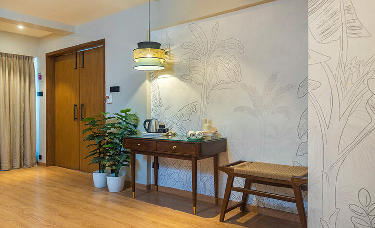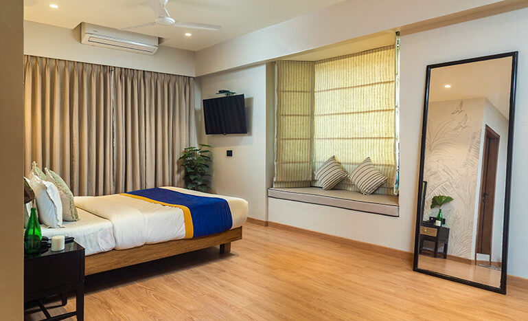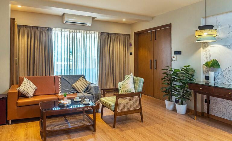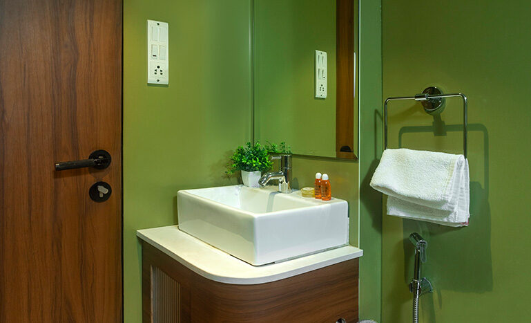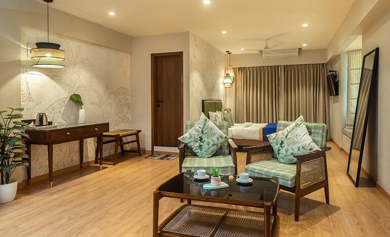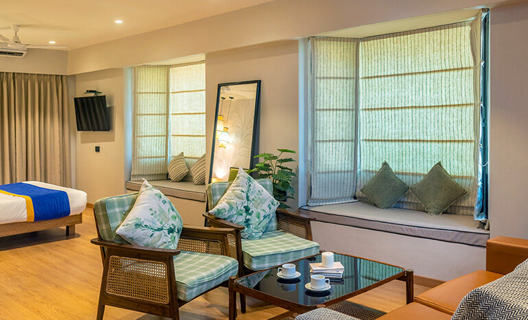 This being the largest room in the hotel, ad-measures a spacious 500 sq ft of area. Attached to the room is a lovely terrace which offers a magical view of the city to the occupants of this room. Apart from a double bed, ward robe, coffee table and writing table, this room also makes provision for a seating arrangement capable of accommodating any visitors to our guests.
